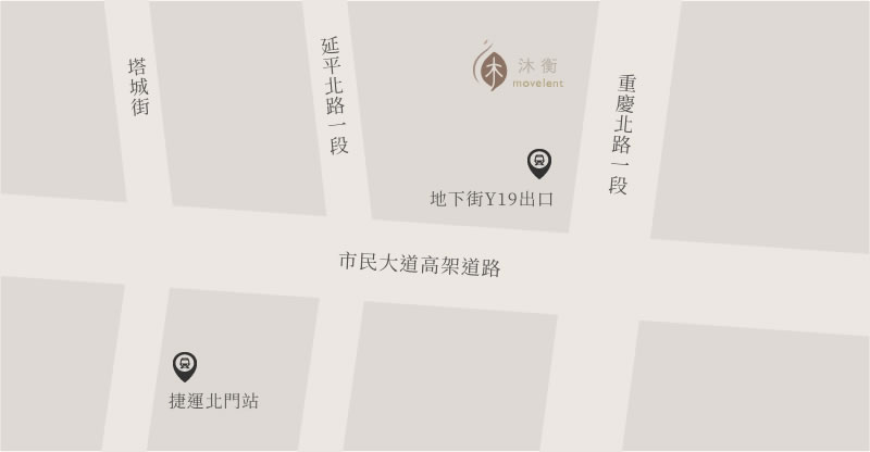 台北車站地下街 Y19 出口步行約 2 分鐘(適合轉乘或搭火車者)